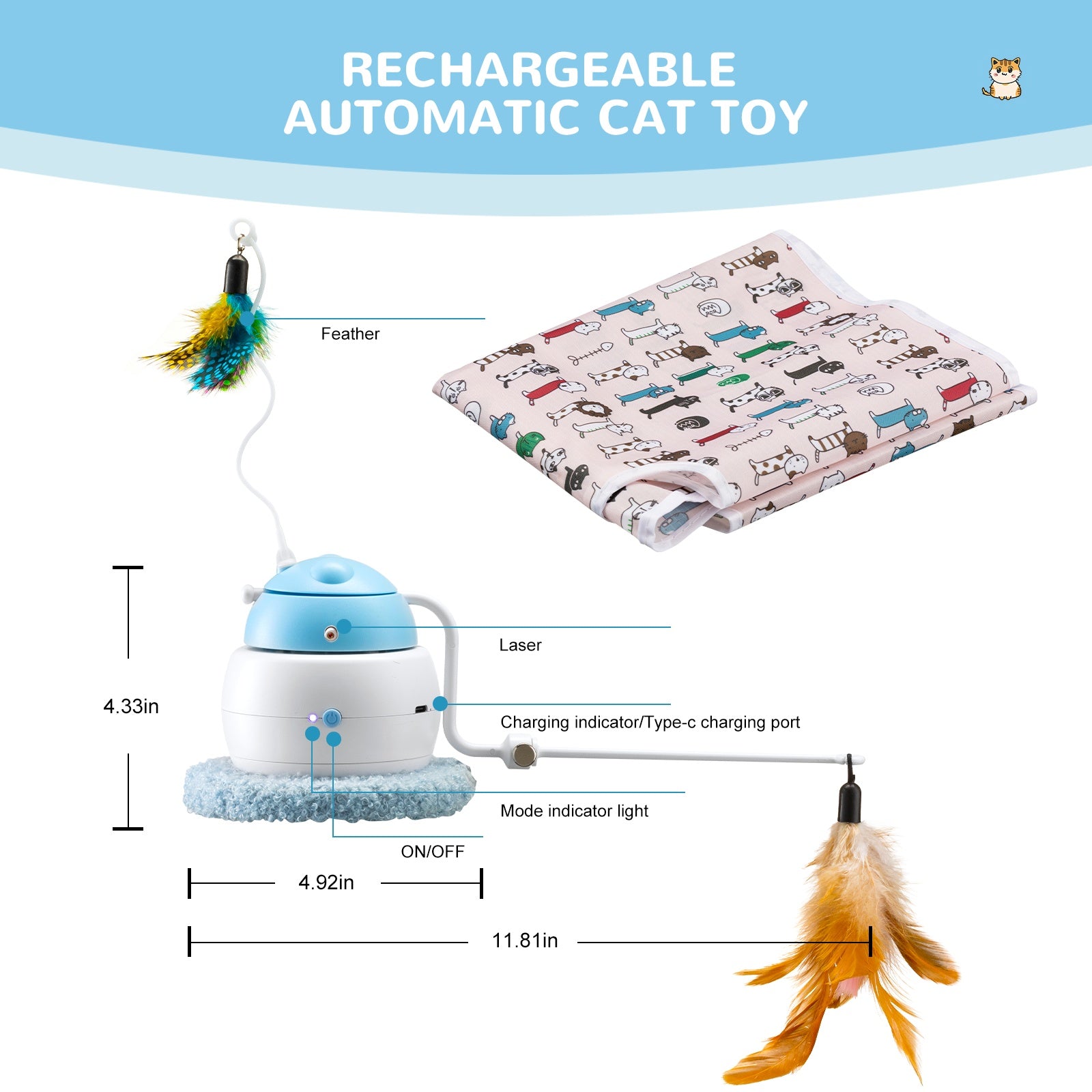 Automatic Interactive Cat Toy, 4-in-1 Rechargeable Cat Laser Toy, Indoor Laser Toy, 2 Feathers And Lid, Hide And Seek Cat Toy For Cat Exercise And Boredom | Laser Cat Toy - Essential Loved